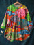 Colorful Abstract Fish Repeat Pattern Printed Women's Casual Cotton And Linen Shirt