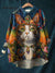 Hippie Cat Art Print décontracté en coton et lin col rond bouton poche à manches longues chemise Top