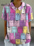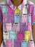 Lovely Cartoon Cat Repeat Pattern Printed Women's Casual Cotton And Linen Shirt