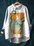 Vintage Funny Cat Art Print Casual Cotton And Linen Shirt