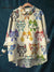 Women's Cute Cat Art Print Casual Cotton And Linen Shirt