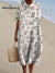 Women's Cute Dog Print V Neck Vintage Linen Loose Dress