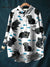 Women's Fun and Cute Little Black Cats and Small Fish Print Casual Cotton And Linen Shirt