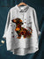 Women's Funny Dog Art Print Casual Cotton And Linen Shirt