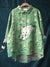 Women's Lovely Cat Floral Art Print Casual Cotton And Linen Shirt