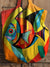 Geometric Tropical Fish Art Printed Linen Tote Bag