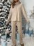 Women's Solid Color Casual Knitted Suit High Collar Long Sleeve Top And Trousers