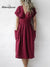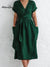 Women's Summer V-neck Short Sleeve Solid Color Cotton and Linen Dress with Pockets