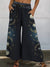 Mysterious Crecent Moon Art Printed Women's Cotton And Linen Casual Wide-Leg Pants