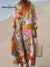 Women's Retro Colorful Floral Art Print Flowy Dress