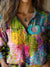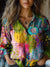 Abstract Oil Painting Floral Art Printed Women's Casual Long Sleeve Comfortable Cotton Shirt