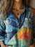 Cross Stitch Sun And Moon Art Printed Women's Casual Long Sleeve Comfortable Cotton Shirt
