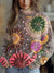 Embroidery Flowers Art Print Knit Turtleneck Pullover Sweater