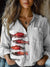Embroidery Salmon Fish Art Printed Women's Casual Long Sleeve Comfortable Cotton Shirt