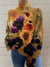 Golden Flowers Print Knit Turtleneck Pullover Sweater