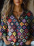 Multicolor Crochet Pattern Printed Women's Casual Long Sleeve Comfortable Cotton Shirt