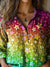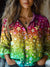 Rainbow Color Star Pattern Printed Women's Casual Long Sleeve Comfortable Cotton Shirt