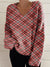 Red Tone Diagonal Checkered Decorative Pattern Casual V-neck Pullover Knit