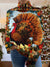 Turkey Art Print Knit Turtleneck Pullover Sweater