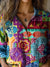 Vibrant Cross Stitch Floral Art Printed Women's Casual Long Sleeve Comfortable Cotton Shirt