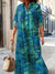 Vibrant Peacock Feather Pattern Printed Women's Pocket Cotton Dress