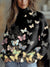 Vintage Butterfly Art Print Knit Turtleneck Pullover Sweater