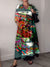 Women's Geometry Retro Art Print Pocket V-neck Cotton Dress