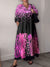 Women's Pink Art Print Pocket V-neck Cotton Dress