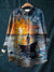 Vintage Lovely Sailing Boat With Sunset Art Print Casual Cotton And Linen Shirt