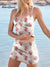 Watercolor French Rose Repeat Pattern Printed V-Neck Suspender Skirt Tankini Pantskirt Set Swimsuit