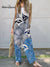 Women's Retro Fish Art Print Casual 100% Cotton Wide Leg Jumpsuit