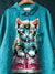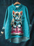 Little Cat In Shoes Graphic Printed Women's Casual Cotton And Linen Shirt