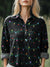 Christmas Light Pattern Printed Women's Casual Cotton And Linen Shirt