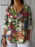 Colorful Summer Garden Pattern Printed Women's Casual Cotton Linen Shirt