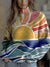 Colorful Watercolor Sun Art Painting Print Knit Turtleneck Pullover Sweater