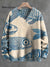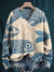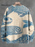 Men's V-neck Women's Blue Minimalist Line Fish Print Long Sleeve Sweater