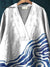 Watercolor Sea Wave Art Printed Women's Casual Cotton And Linen V-neck Shirt