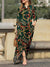 Women's Chain Pattern Art Print Loose Elegant Casual Lapel Long Sleeve Cotton Long Shirt Dress