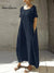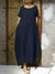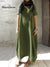 Women's Cotton and Linen Solid Color Round Neck Short Sleeve Split Dress