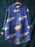 Women's Cute Blue Fish Print Casual Cotton And Linen Shirt