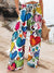 Women's Rainbow Color Heart Print Printed Cotton And Linen Casual Pants