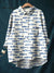 Women's Small Blue Sardine Print Print Casual Cotton And Linen Shirt
