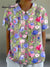 Women's Flower Art Print Casual Cotton And Linen Shirt