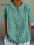 Women's Small Green Flowers Print Casual Cotton And Linen Shirt
