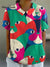 Abstract Cats Pattern Printed Women's Casual Cotton And Linen Shirt