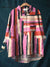 Abstract Geometric Line Pattern Printed Women's Casual Cotton And Linen Shirt