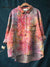 Abstract Geometric Pattern Printed Women's Casual Cotton And Linen Shirt