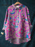 Abstract Heart Pattern Printed Women's Casual Cotton And Linen Shirt
