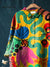 Abstrct Art Printed Women's Casual Cotton And Linen Shirt