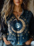 Astrology Midnight Star And Moon Art Printed Women's Casual Long Sleeve Comfortable Cotton Shirt